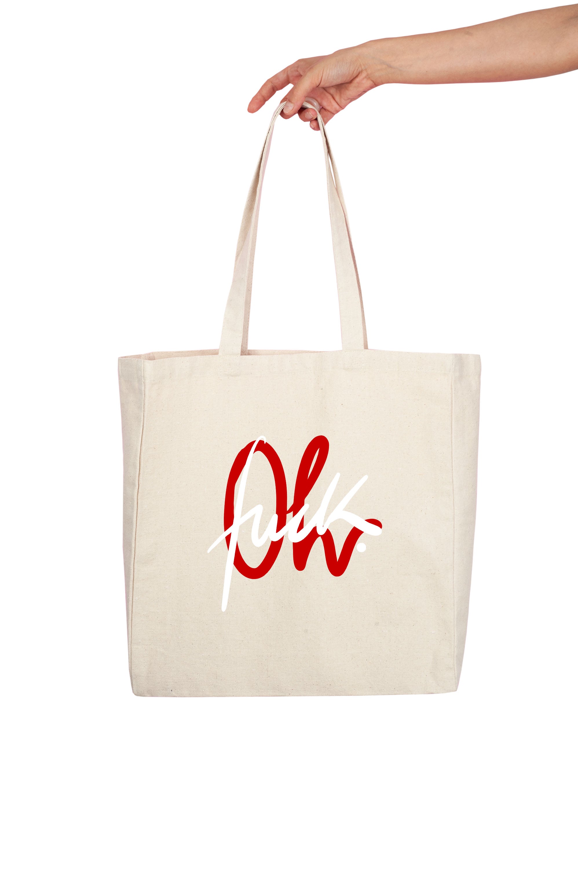 Oh fuck. Handwritten by us and then manually printed tote bag. Wear...