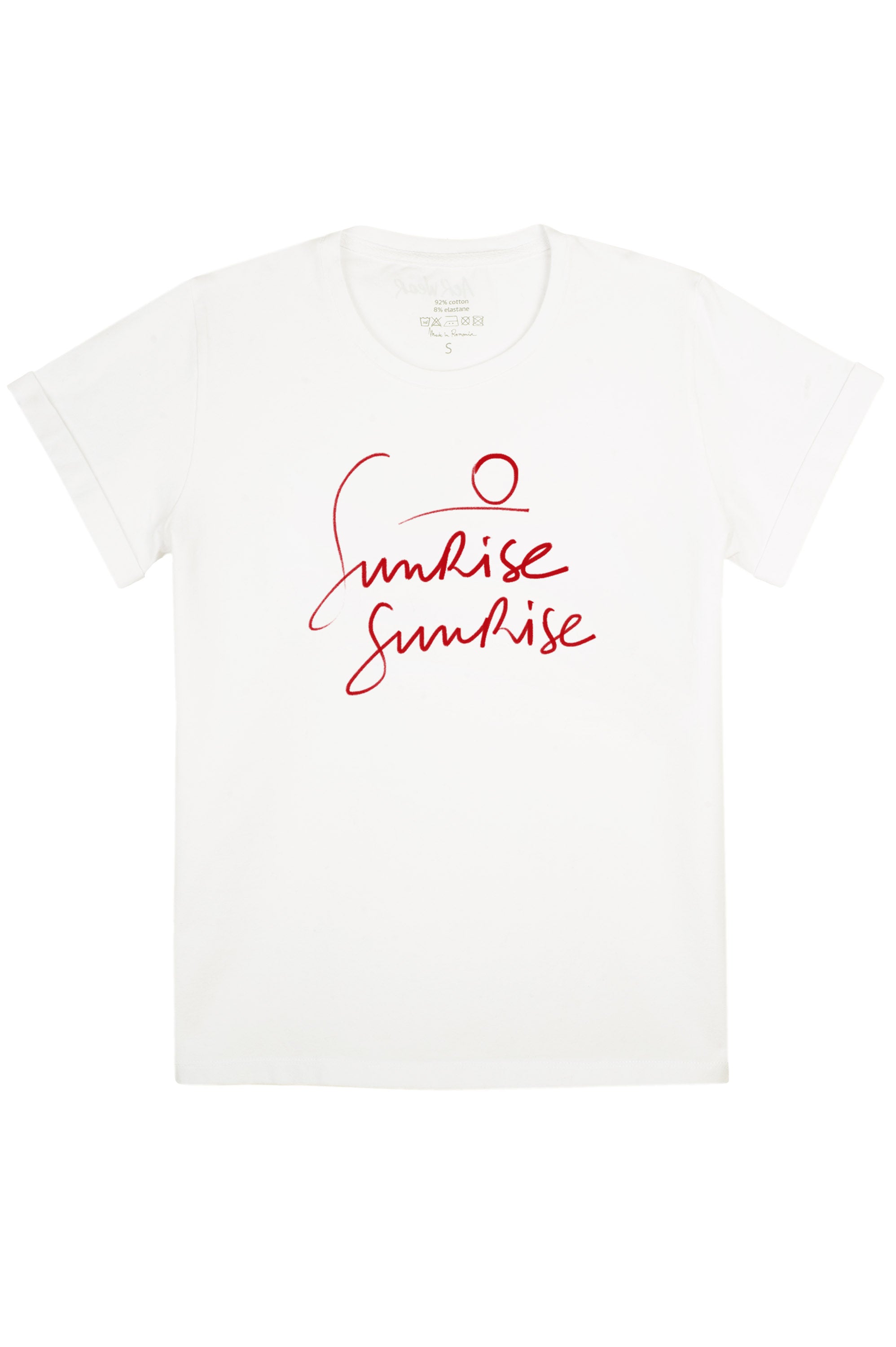 Sunrise, sunrise, looks like morning in your eyes... Front side print....
