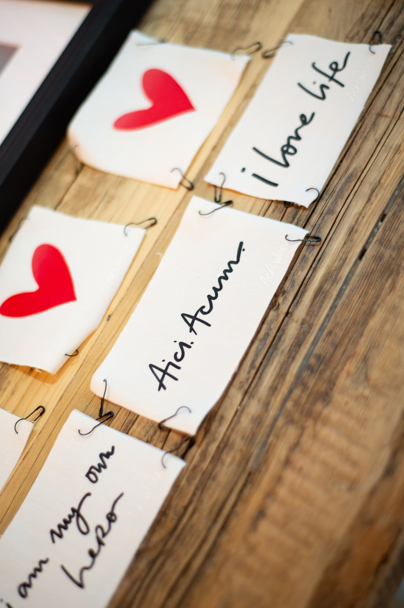 We like to play with words and ( child like) drawings. We design feelings that "speak without speaking" for the one who owns the piece.